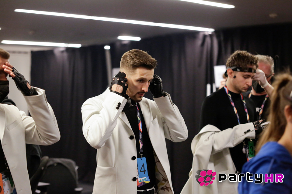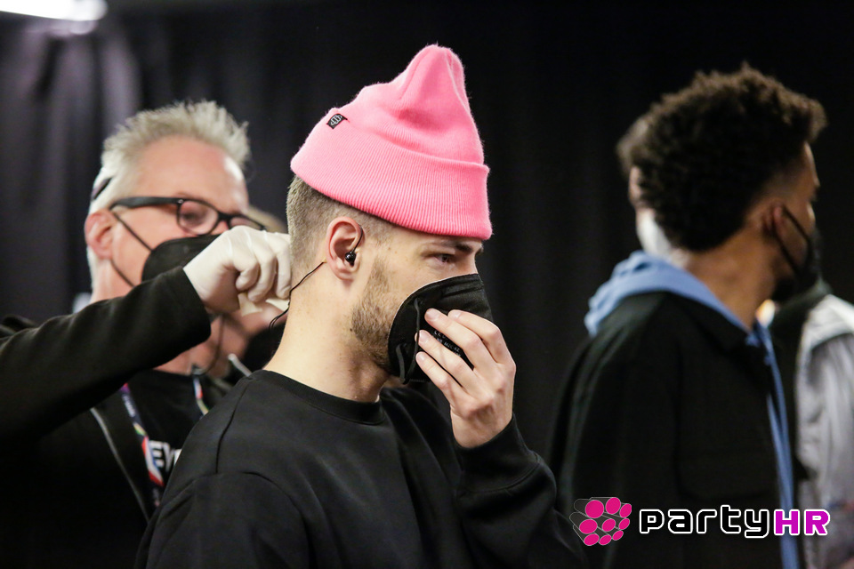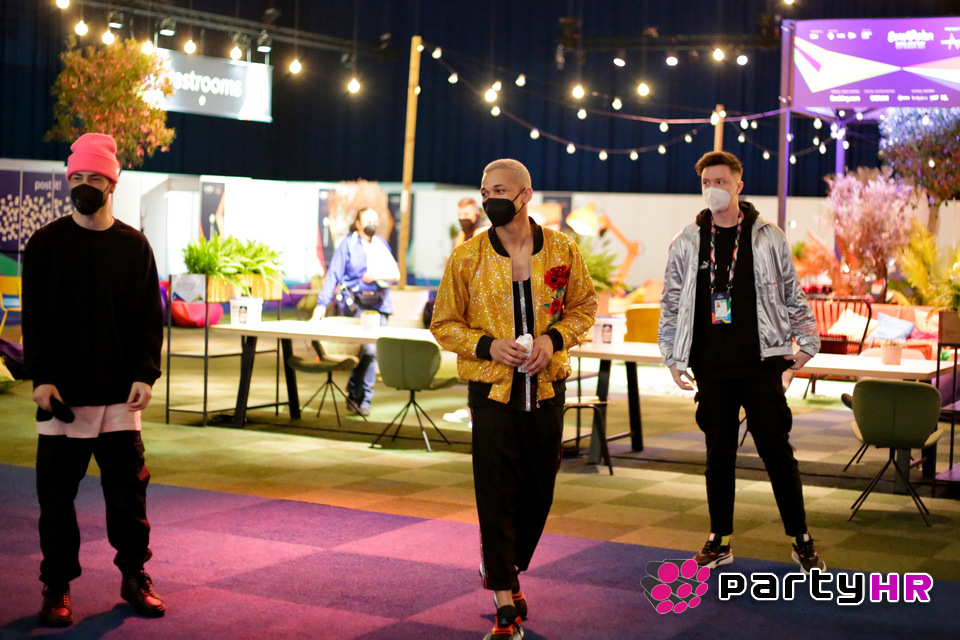 Na pozornici u Rotterdamu uoči treće probe za Eurosong 2021. godine, bilo je vrlo veselo. Izvođači su se pripremali za nastup, probavali robu u kojoj će zasjati u svom najboljem izdanju na Eurosongu pred milijunskim auditorijem.