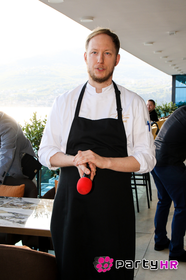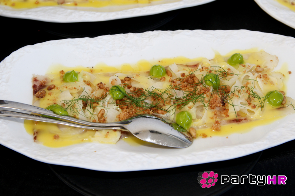 Deni Srdoč prezentirao  je poseban ljetni i lagani lounge meni koje se izvrsno uparuje s autorskim koktelima. Marinirani boškarin, carpaccio od kvarnerske bijele ribe, pačji pate i gacka losos pastrva samo su neke od autorskih kreacija koje su gosti imali priliku kušati i koje su ih oduševile!