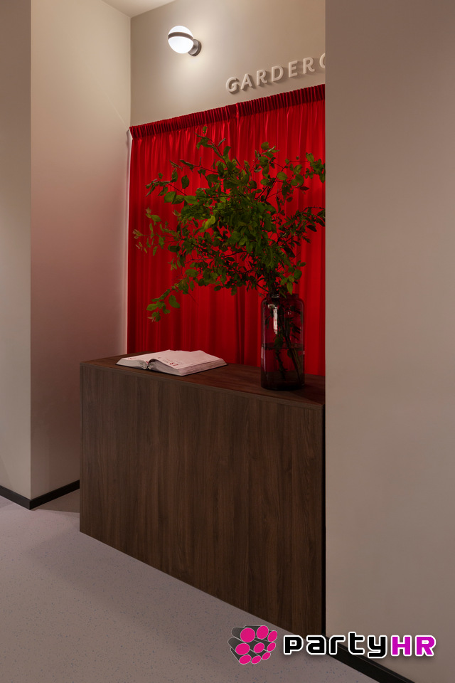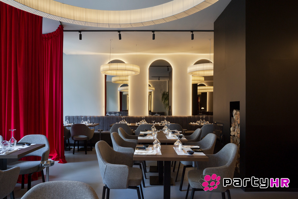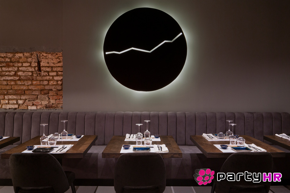 Dizajn interijera inspiriran je sofisticiranim konceptom „wabi-sabi", s pomno osmišljenim detaljima koji suptilno odaju počast japanskoj kulturi bez nepotrebnih klišeja. Crveni baršunasti zastori stvaraju toplu, luksuznu atmosferu, dok je japanska crvena boja postala posebno popularna zahvaljujući dojmljivo uređenom ženskom toaletu, omiljenom mjestu za fotografiranje na društvenim mrežama. Cjelokupan dojam zaokružen je impresivnom, indirektnom rasvjetom te velikim, custom-made lusterima koji dodatno naglašavaju eleganciju prostora.